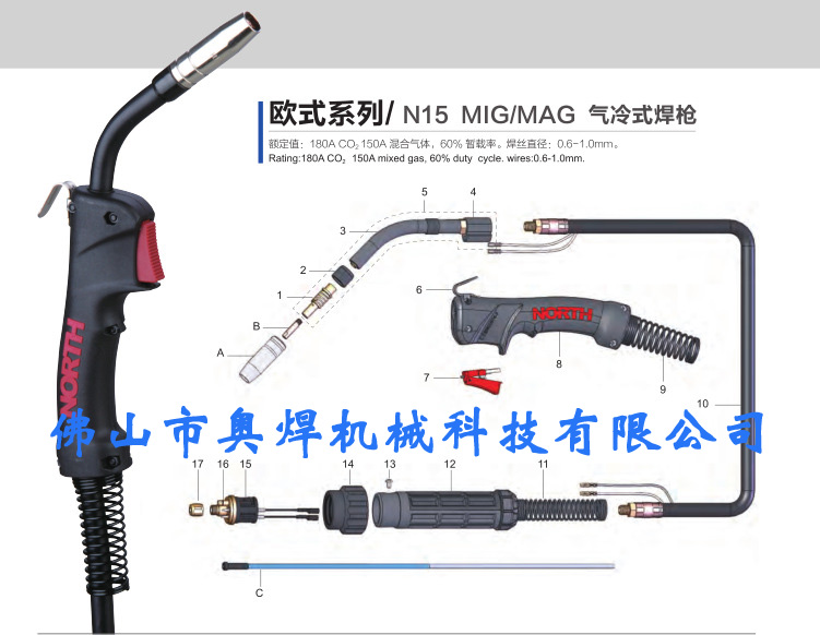 原裝諾斯QTB-160/N15雙色手柄氣保焊槍,歐式接口氣冷式推絲二氧化碳焊槍同型號(hào)15AK 3米、4米、5米氣保焊槍。公司通過ISO9001:2000國(guó)際標(biāo)準(zhǔn)質(zhì)量體系認(rèn)證,產(chǎn)品通過國(guó)家強(qiáng)制CCC認(rèn)證和歐盟CE認(rèn)證。
